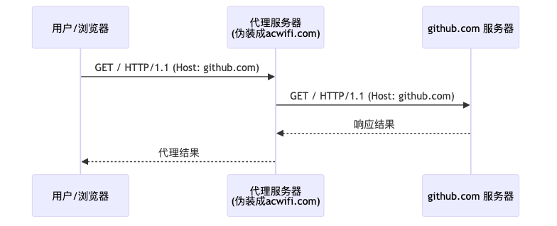 如果是这种情况的话,那么我是否可以修改 =/etc/host=,把我的服务器伪装成 acwifi.com, 所有的请求流量都经过我的服务器,再去请求目标网站(github.com) 如: